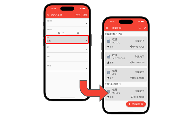 作業記録 作業の実績を記録できます。 |