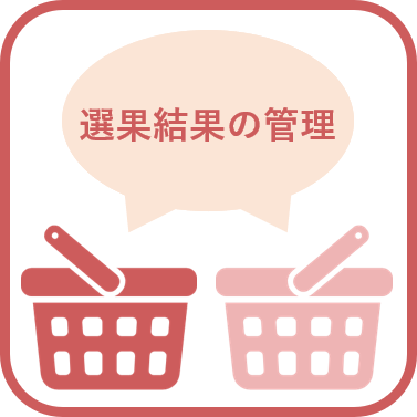 選果結果管理 選果結果の詳細な情報の登録ができます。 この情報を集計機能で利用して分析ができます。 |