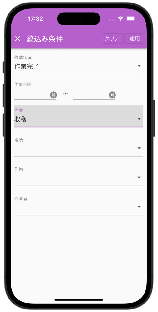 場所管理 農地や倉庫を登録しておき、管理ができます。 |