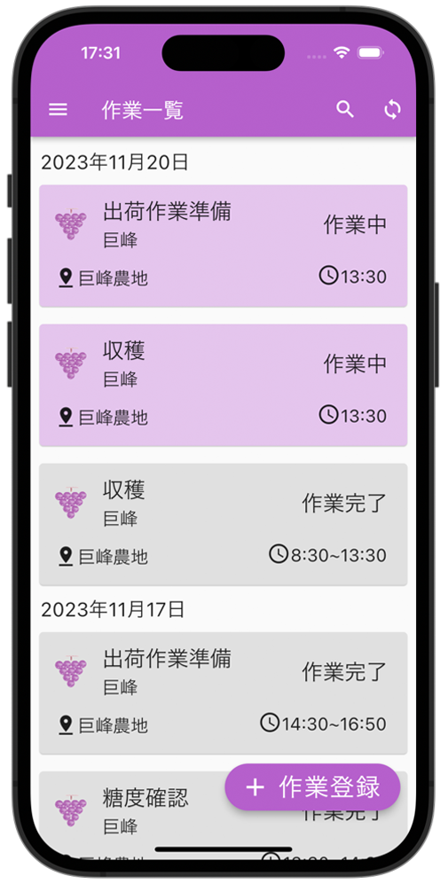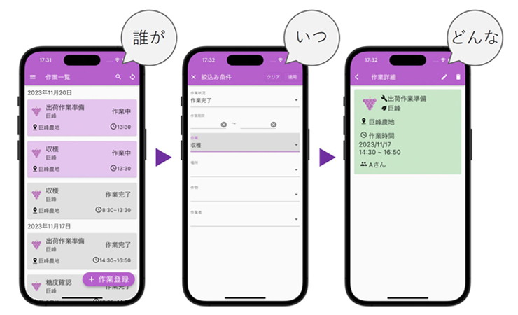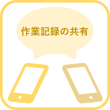 作業記録の共有 作業者全員が「誰が」「どの作業を行ったか」などをリアルタイムで共有できます。 |